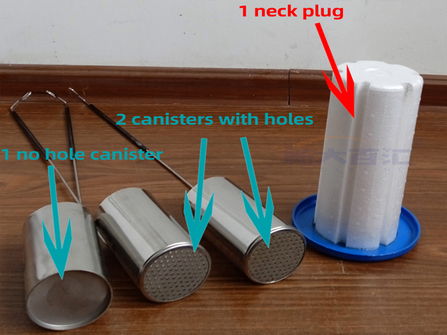 There are two options for the bottom of the canisters: no holes/with holes, please choose according to your needs. These containers are useful if you need to carry and lower small sized objects and dip them in to the large container.